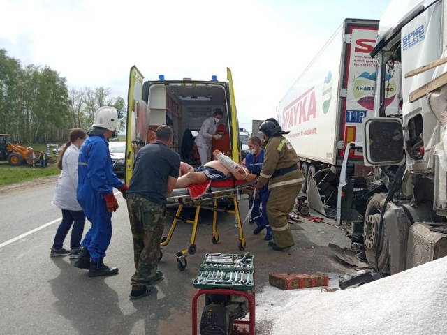По информации спасателей серьезно пострадал водитель грузовой фуры «Мерседес». Спасатели буквально вырезали пострадавшего из разбитой кабины. Водитель получил многочисленные переломы.