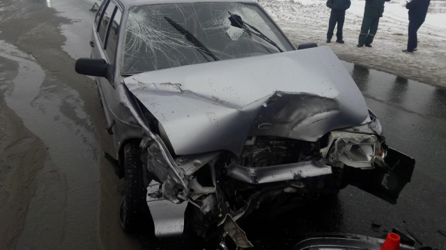 От сильного удара передняя часть кузова «четырнадцатой» превратилась в гармошку.