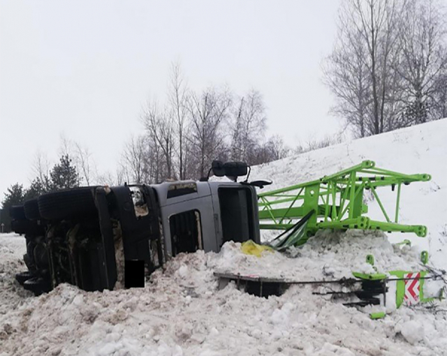 В Самарской области автокран МАЗ завалился в кювет в прошедший понедельник, 27 февраля. Водителя машины увезли на скорой.