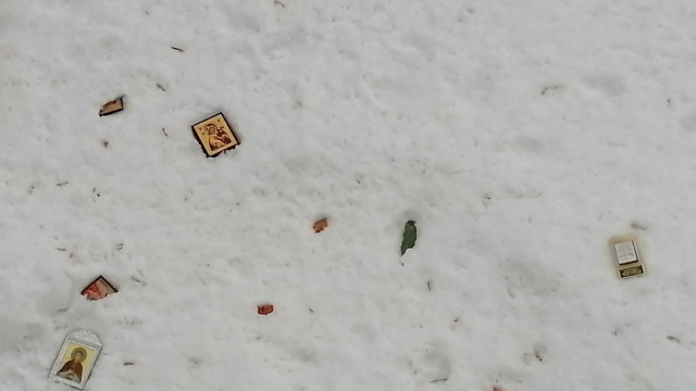 На снимках запечатлено, как на снегу разбросаны десятки икон. Как сообщает ГТРК «Самара», неблагочестивое отношение к ликами замечено в одном из дворов Красноглинского района Самары на улице Сергея Лазо. На фото видно, что в снегу оказались лики Иисуса Христа, Божьей Матери, Серафима Саровского и других святых.