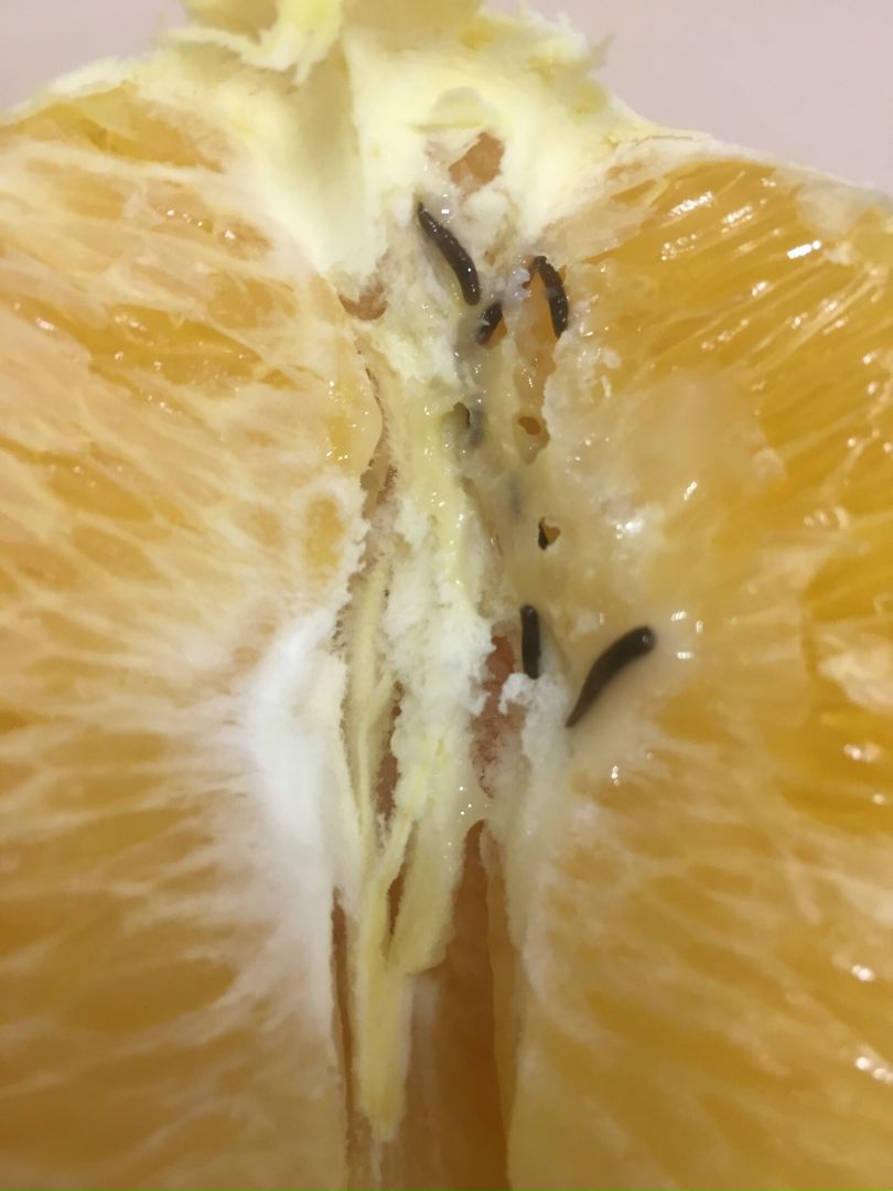 Впрочем, дома хозяйку поджидал неприятный сюрприз. Очистив апельсин и разделив его на дольки, она обнаружила внутри червей.