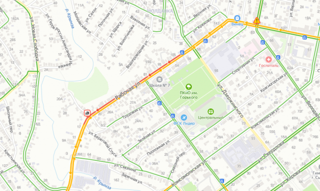 В результате столкнувшиеся автомобили перегородили часть дороги. Движение с Рабочей на улицу Урицкого практически встало. Во встречном направлении водителям удается медленно «ползти» вверх.