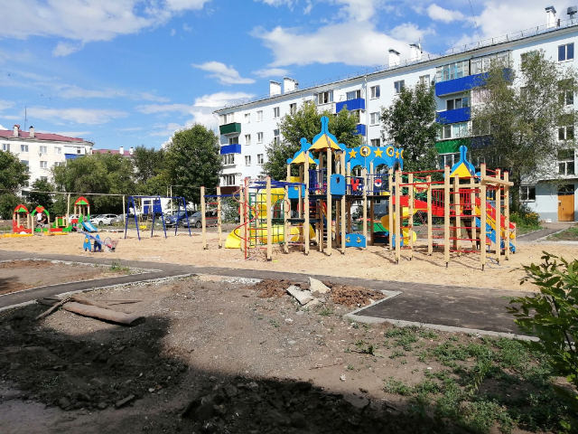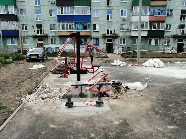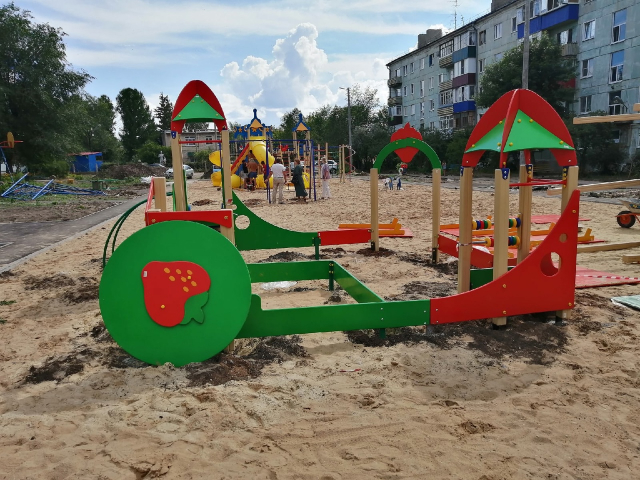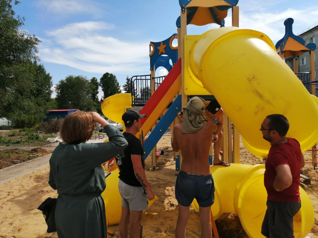 В Сызрани, во дворе трех многоподъездных многоэтажек на улице Новостроящейся, завершается монтаж детской площадки, похожей на аквапарк. Ее игровой комплекс венчают большие изогнутые трубы, по которым дети смогут скатываться, но не в бассейн, а в песок.