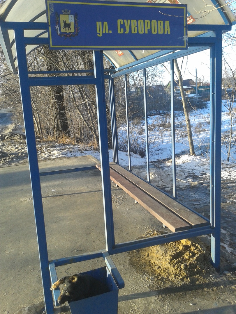 В урну для мусора у остановочного павильона неизвестные бросили труп собаки. На шее у животного был старый потрепанный ошейник. Не исключено, что у него был хозяин.