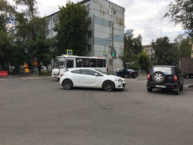 Автобус ПАЗ 28-го маршрута и легковые машины «Опель Астра» и «Тойота Краун» столкнулись на перекрестке в центре города. Авария произошла около полудня в понедельник, 5 сентября, на пересечении улиц Ульяновской и Бабушкина.