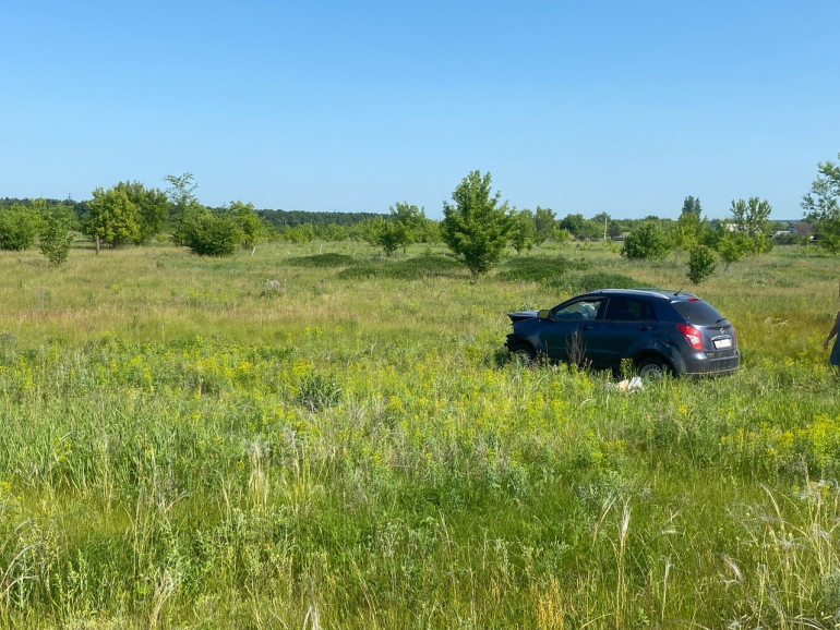 От удара корейский кроссовер вылетел в кювет, разбитый универсал остался на дороге.