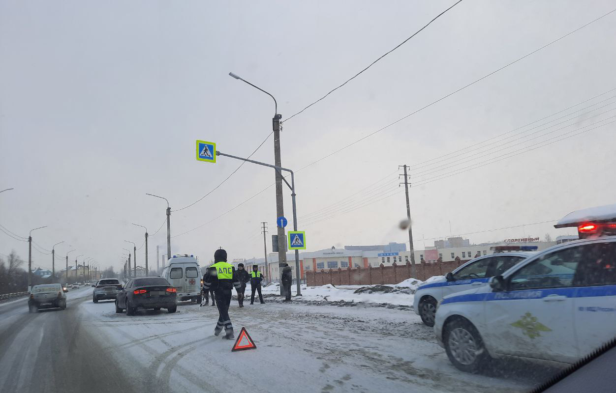 Известно, что около нерегулируемого пешеходного перехода черный седан Audi влетел в белый кроссовер Chery. На место происшествия прибыли два экипажа ДПС и скорая помощь.