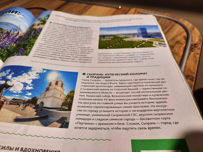 Рассказ о Сызрани в журнале РЖД появился не случайно. Несколько страниц этого издания посвящены национальному туристическому маршруту «Жигулевские выходные», который объединяет Самару, Тольятти и Сызрань.