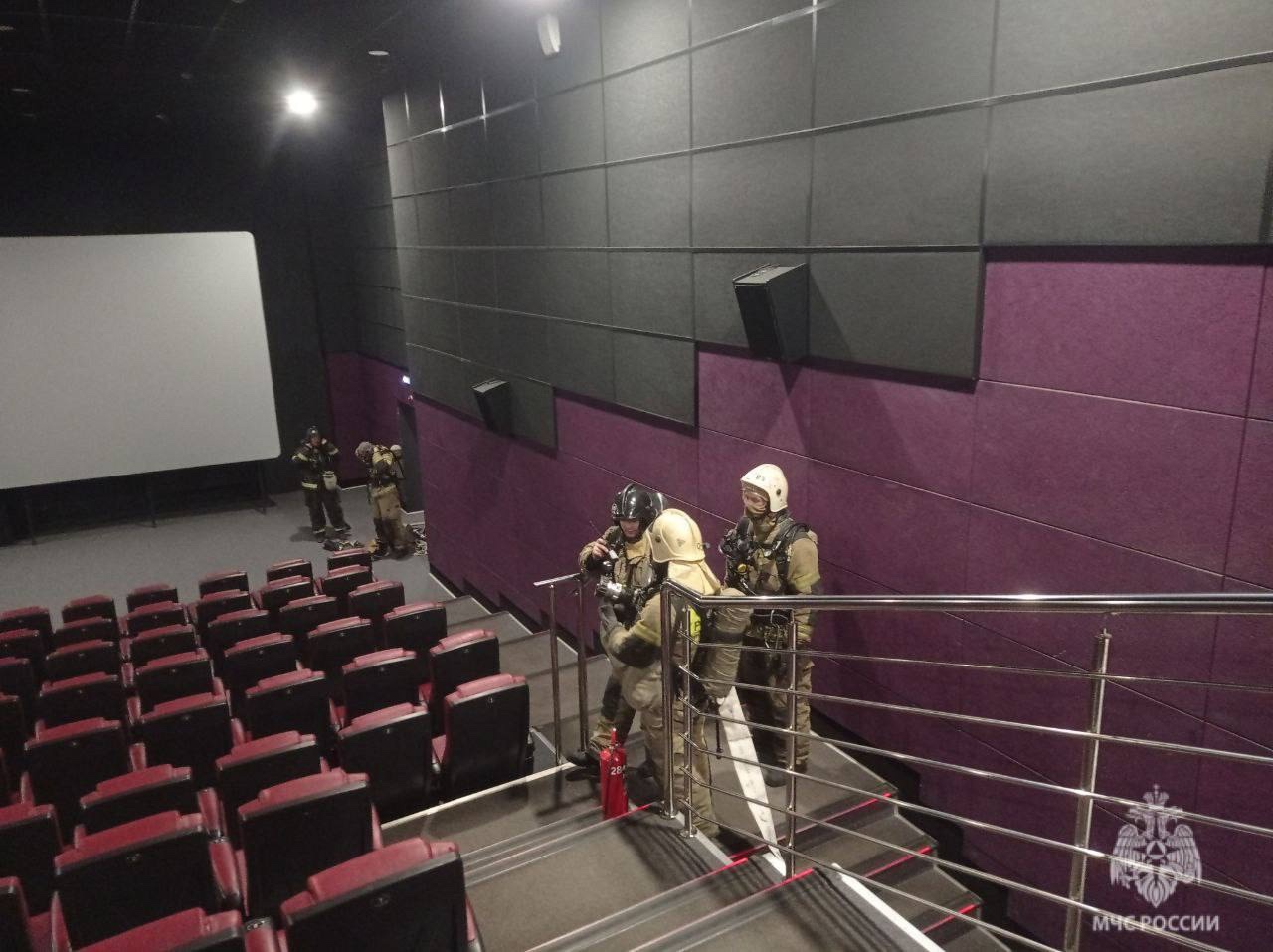 По легенде учений, пожар вспыхнул на втором этаже здания в кинотеатре Q-Cinema. Огонь разгорелся на площади 175 квадратных метров и в дыму оказался не только второй, но и первый этаж.