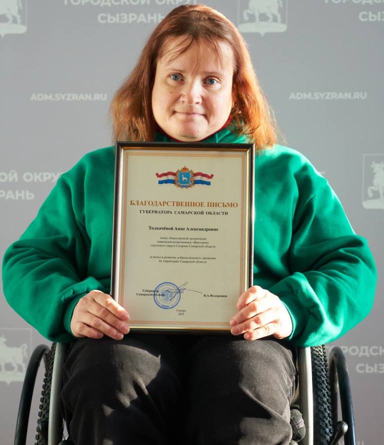 На высоком уровне отмечен вклад Сызранской епархии Русской Православной церкви и члена Общественной организации инвалидов-колясочников «Виктория» Анны Толкачёвой.