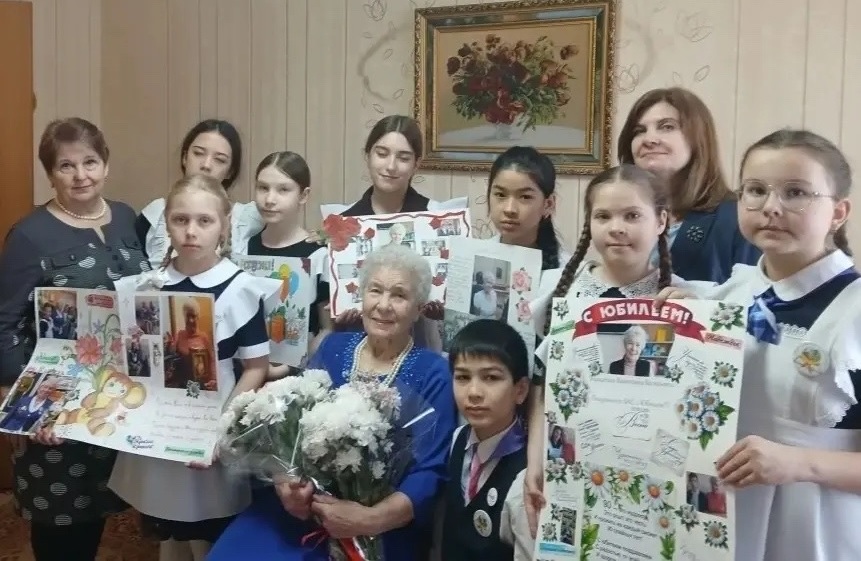 Наталья Еремина тепло поздравила именинницу и передала поздравления от мэра Октябрьска Владимира Ревина и всех жителей города. Учащиеся школы №3 приготовили имениннице творческий подарок.