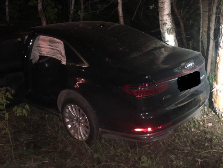 Было установлено, что с дороги в кювет слетела Audi, иномарка на скорости влетела в деревья. К счастью, в этом ДТП никто не пострадал, в машине сработали подушки безопасности.