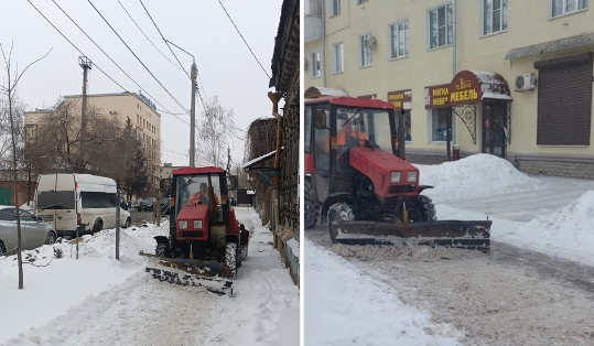 Днем ранее сотрудники МКУ "Благоустройство" расчистили тротуары от снега в центральной части города, в том числе по улицам Ульяновской и Московской.