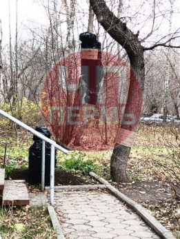 Муляж тела в черном пакете повесили около входа в пункт выдачи заказов маркетплейса. Инсталляция с подписью «нагрубил менеджеру» появилась на улице Чкалова в городе Пермь.