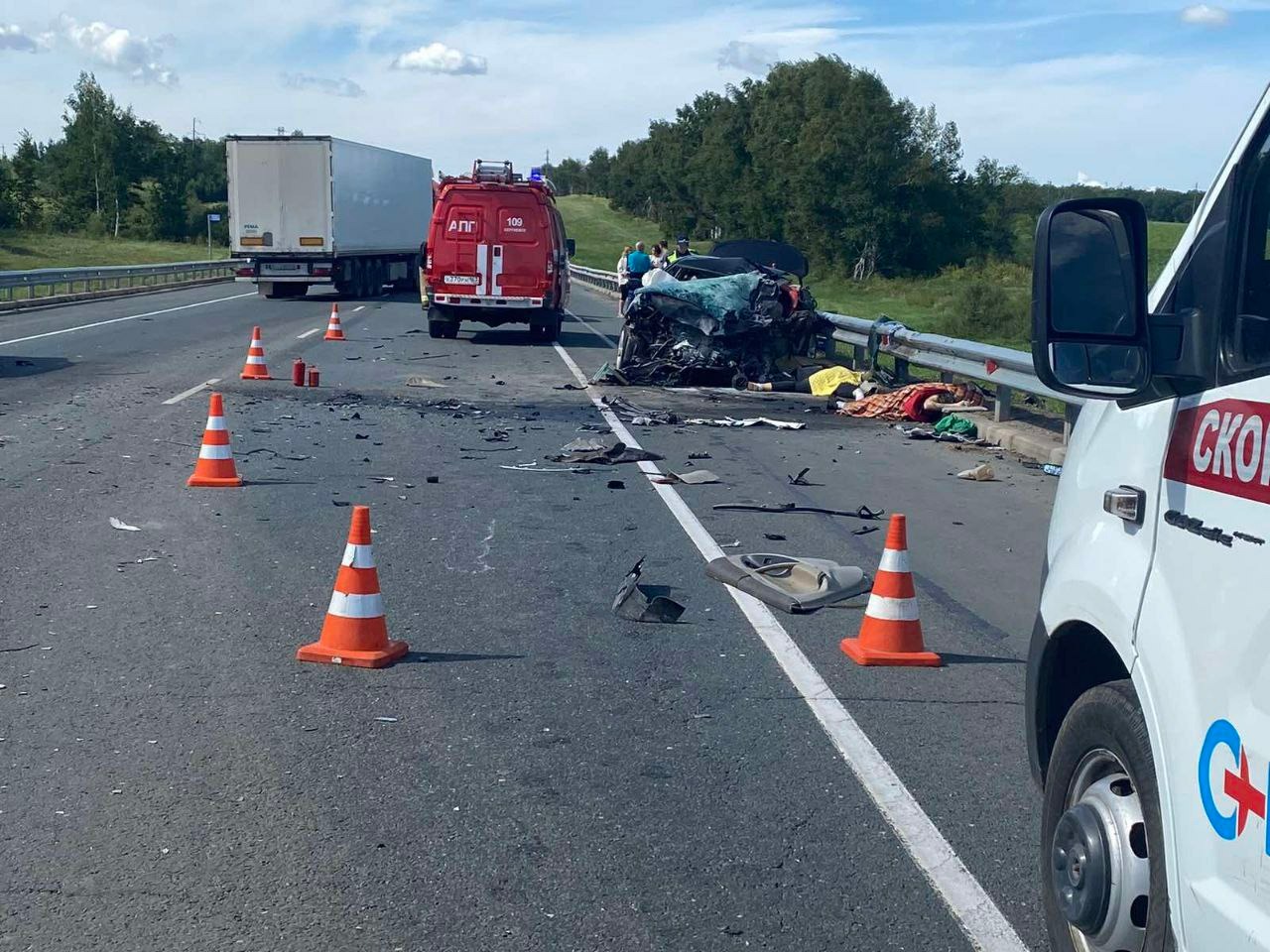 Уже сообщалось, что сегодня, 27 июля, в Самарской области на трассе М-5 разбились три автомобиля: грузовая фура MAN, Toyota Camry и Škoda Kodiaq.