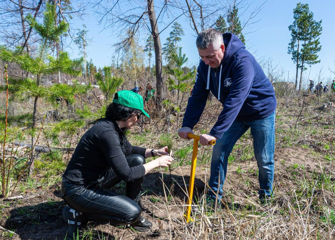 За несколько часов участники акции на площади в 5 гектаров высадили более 18 тысяч саженцев сосны.