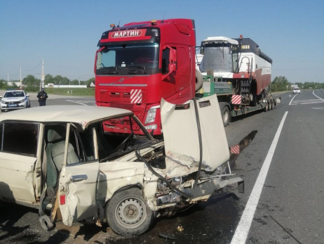 В субботу, 17 мая, большегруз с комбайном снес «Жигули» в Красноярском районе Самарской области. Подробности рассказали в самарском Центре по делам ГО, ПБ и ЧС.