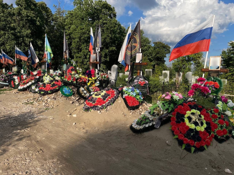 В Самарской области обнаружили массовое захоронение бойцов ЧВК «Вагнер». На кладбище в Жигулевске появилась аллея со свежими могилами участников специальной военной операции. Памятников и надгробий еще не установили. Рядом с каждым земельным холмиком – знамена «Вагнера» и Российской Федерации.