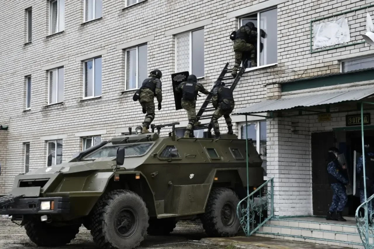 Отмечается, что в результате слаженных действий всех подразделений беспорядки были пресечены, заложники освобождены, а нарушители порядка были задержаны.