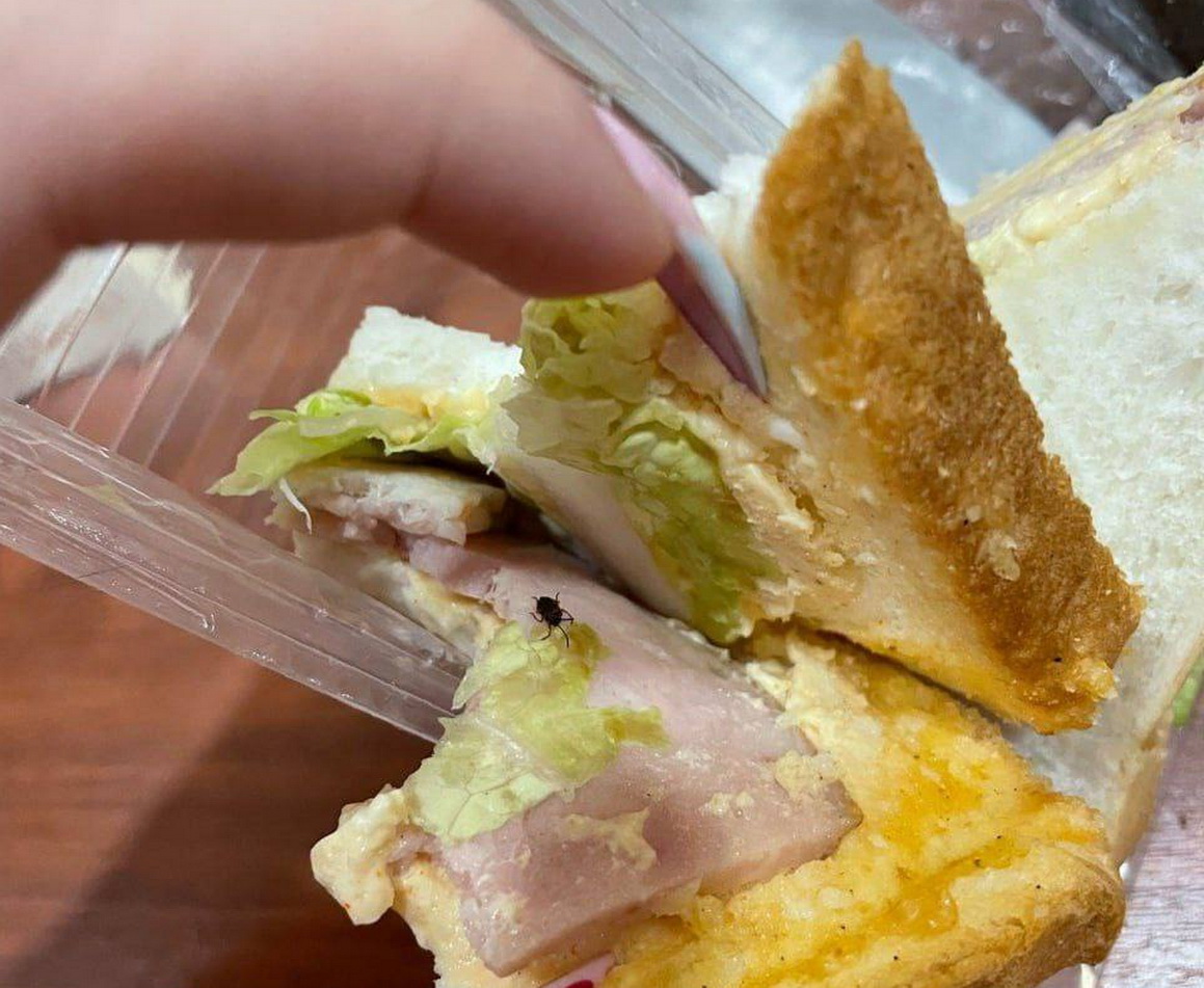 В Самарской области покупательница сетевого магазина едва не съела тварь ползучую. Внутри купленного сэндвича оказался черный жук. Судя по фото, сделанным покупательницей, шестиногое существо стало частью фастфуда с колбасой.