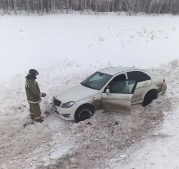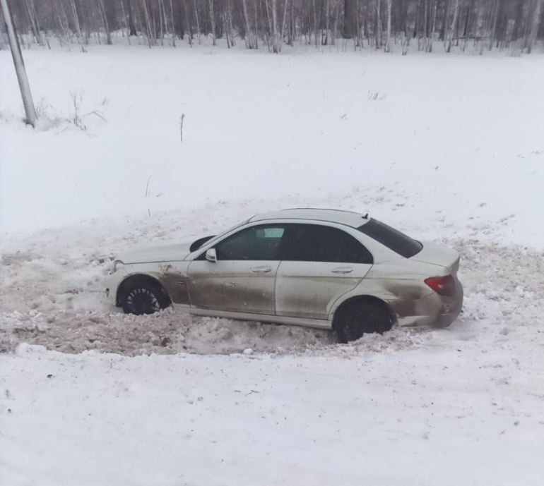 В Самарской области белый Mercedes вылетел с трассы в кювет.