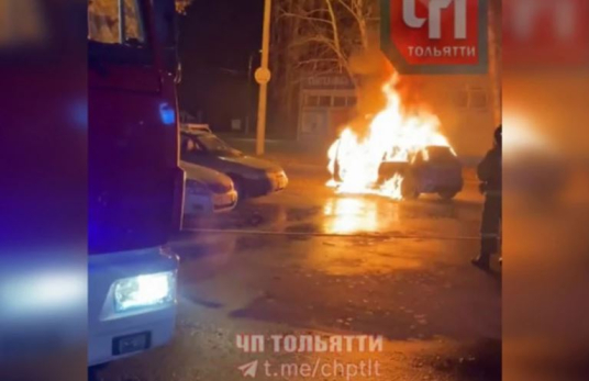Известно, что на месте происшествия работали экстренные службы Тольятти. Видно, что огонь практически целиком уничтожил легковушку.