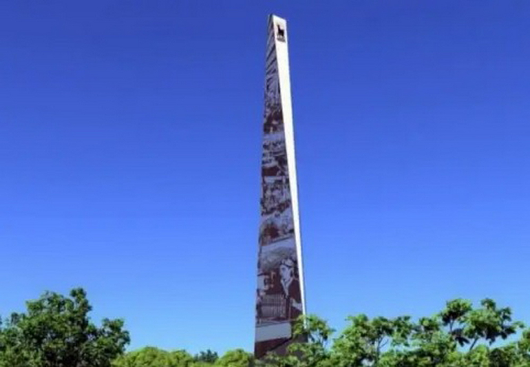 Обелиск изготовили и привезли из Подмосковья. Его высота 25 метров. По бокам возведут два пилона длиной 12 метров. Монтаж начнется в Кузнецком парке, со стороны жилых домов 105 и 119 на ул. Ульяновской. На месте, где нет инженерных коммуникаций, уже залили фундамент монумента.