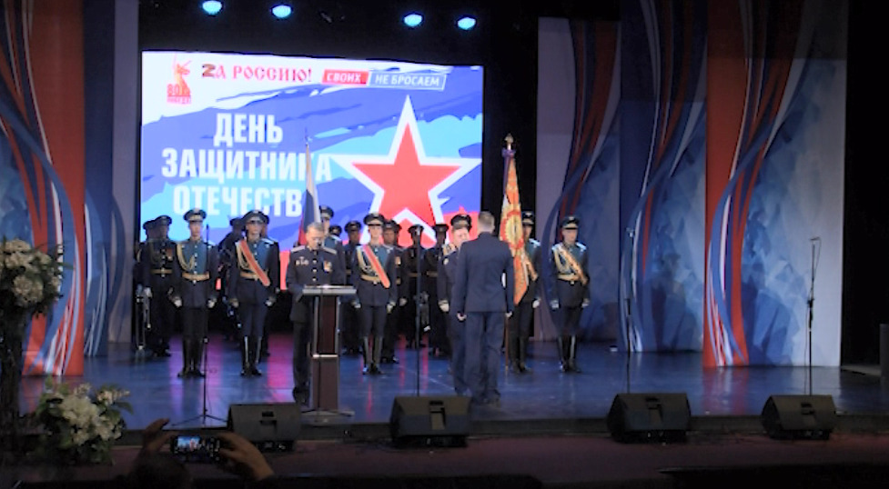 На торжественном собрании зачитали телеграмму от Депутата Государственной Думы Андрея Трифонова с Днем Защитников Отечества.