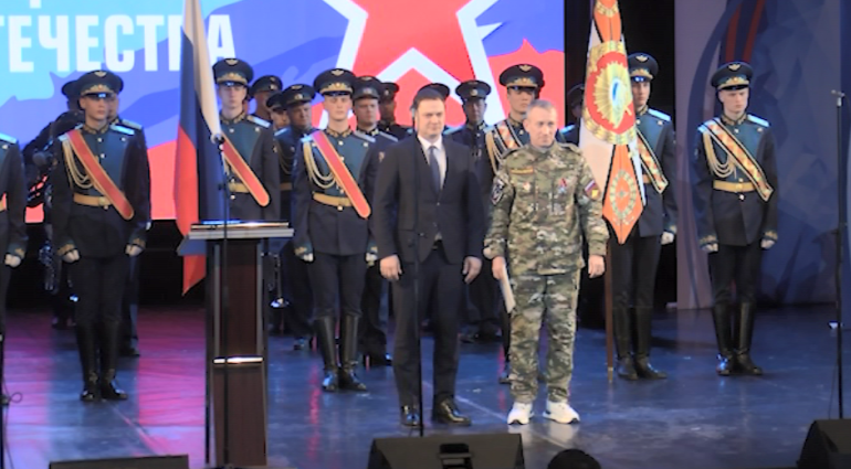 Для поздравления и вручения региональных наград и благодарностей вышел глава города Сергей Володченков. На сцену были приглашены Евгений Никитин (управление ГО и ЧС администрации Сызрани); Александр Шитов (зам. директора АО «ТЯЖМАШ»); Валерий Трупанов (руководитель сызранского отделения организации «Боевое братство»); участники СВО Дмитрий Нянькин, Нефедов Олег, Лев Акишин, Вадим Гневшев, Джамал Машаралиев - участник СВО и куратор Сызрани.