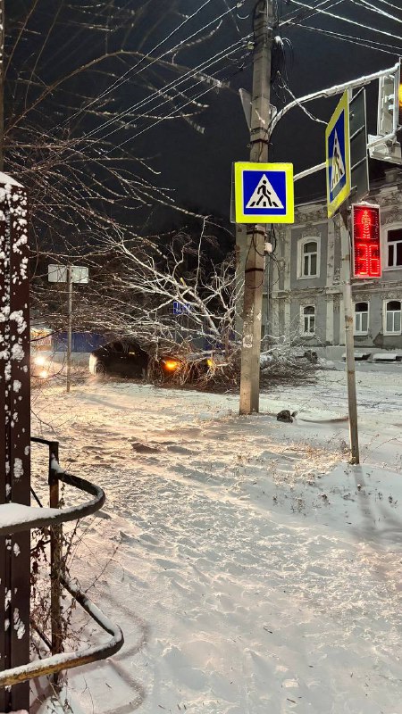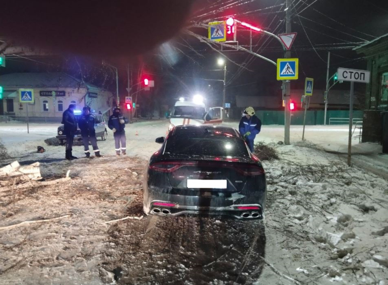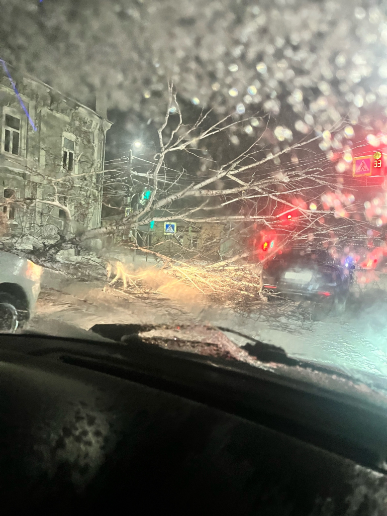 В десятом часу вечера на перекрестке улиц Интернациональной и Урицкого, около Белова дома, прямо на дорогу рухнуло дерево.