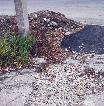 На перекрестке улиц Фрунзе и Новой в районе Промышленного рынка безобразная куча камней, перепачканных мазутом, портит все впечатление от новенького асфальта, уложенного в два слоя.