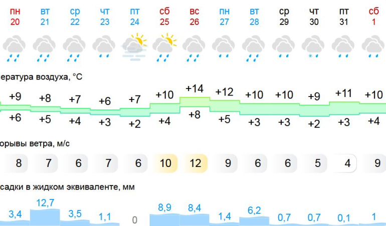 - Под влиянием атлантических циклонов и фронтов будет преобладать пасмурная, с дождями и туманами погода. Температура воздуха остается несколько выше климатических значений, - сообщили синоптики.
