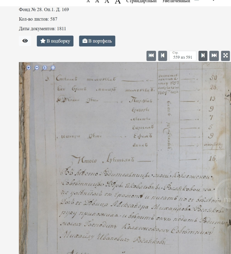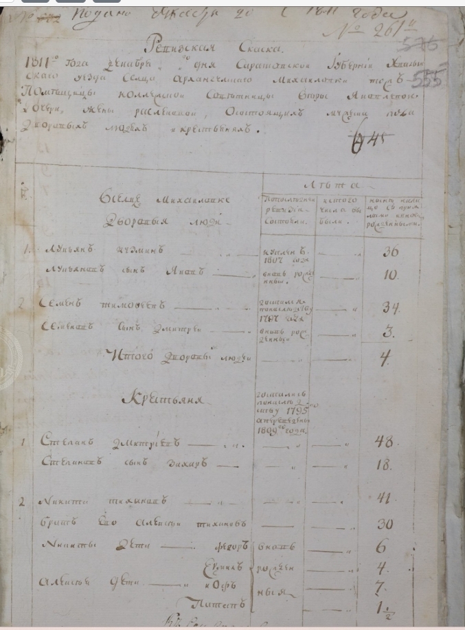 Дмитрий надеется найти ревизскую сказку 1811 года - это старинный документ, похожий на перепись населения. В таких бумагах записывали, кто где живет, чтобы потом начислять налоги. В нужной Дмитрию записи должно быть указано, что его предок Степан Тимофеев переехал в Саратовскую губернию, в сельцо Росляковка.
