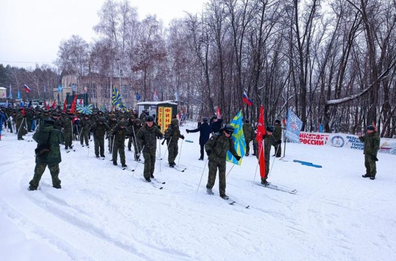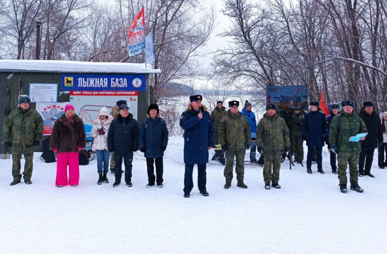 Старт лыжному забегу дали на территории водно-гребной базы. Участников заезда напутствовало руководство сызранского вертолетного училища и почетные гости.