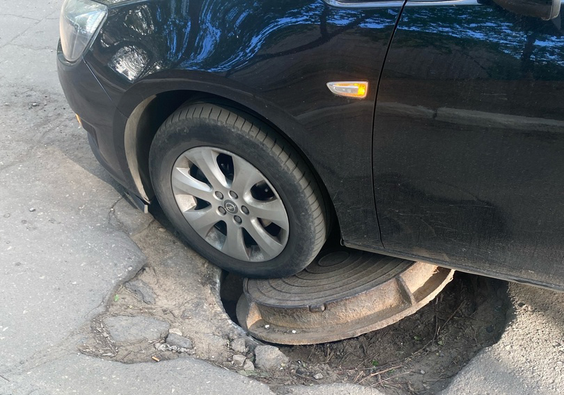 В Сызрани автоледи повредила машину крышкой колодца на юго-западе Сызрани. По словам женщины, все произошло, когда она на иномарке передвигалась у дома 85 на проспекте 50 лет Октября и наехала передним колесом на аварийный люк. от нагрузки металлическая крышка подскочила и ударила снизу по автомобилю.