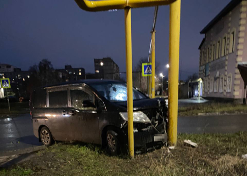 Авария произошла около пяти часов вечера, 17 ноября, на улице Октябрской. Автомобиль на нерегулируемом перекрестке с улицей Саратовской съехал с дороги и врезался в опору газопровода.