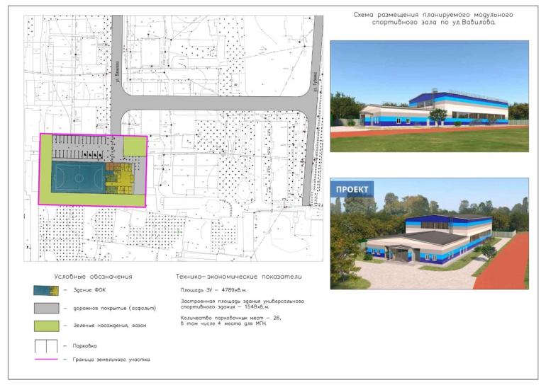 Общая площадь территории комплекса - 4 789 квадратных метров. На территории обустроят парковку на 26 мест, также предусмотрены зеленые насаждения.