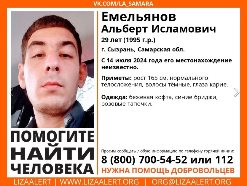В Сызрани бесследно пропал Альберт Исламович Емельянов. О судьбе 29-летнего мужчины ничего не известно с 14 июля этого года.