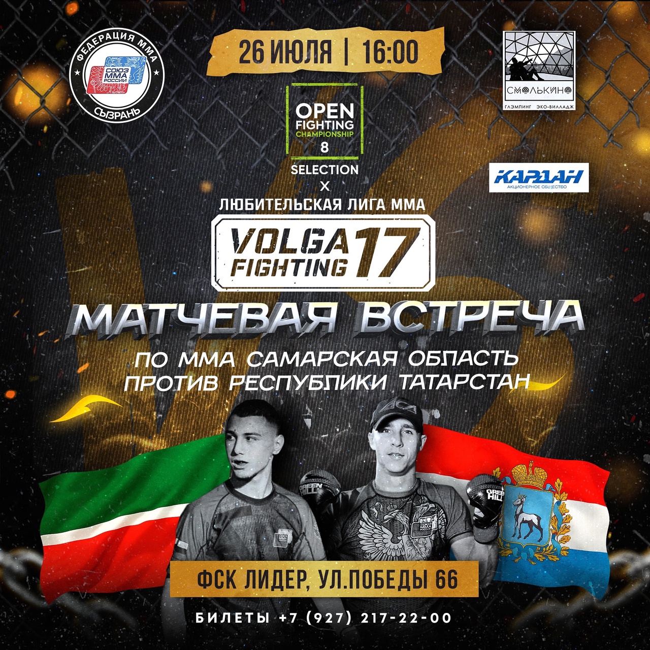 В субботу, 26 июля, в Сызрани пройдет большой совместный турнир по ММА двух организаций - OPEN FC SELECTION и VOLGA FIGHTING. В соревнованиях по смешанным боевым искусствам примут участие как профессионалы, так и любители.