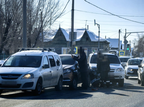 Как видно на фото очевидцев, все три автомобиля ехали в попутном направлении в сторону улицы Ф. Энгельса. Судя по кадру, больше всех повредился отечественный внедорожник – у него оказался разбита фара и бампер.