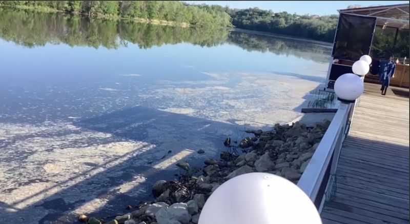 Хлопья белого цвета, уносившиеся течением в сторону Волги, внешне напоминали жирную пену с обрезками продуктов. Также вещество в виде пленки с неравномерной структурой было похоже на некую накипь.
