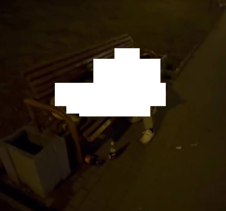 На выложенном фото запечатлены в пикантной ситуации молодые люди, расположившиеся под светом фонарей на лавочке, которая установлена вдоль какого-то тротуара.