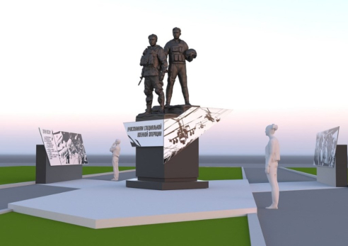 По проекту, центральной частью памятника станут две 4,5- метровые фигуры – вертолетчика и пехотинца, которые будут установлены на постамент. Дополнят скульптурную композицию тематические пилоны, посвященные подвигам военнослужащих, принимающих участие в СВО. Памятник планируют установить в Юго-Западном районе на аллее у ДК «Горизонт».