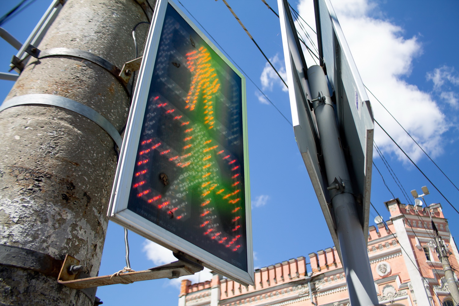 Красный сигнал обозначается звуком метронома, что упрощает поиска места перехода.