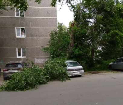 Огромная ветка карагача отломилась и рухнула в то место, где были припаркованы легковые автомобили. По словам очевидцев, это произошло 25 июня на улице Московской у одной из пятиэтажек.
