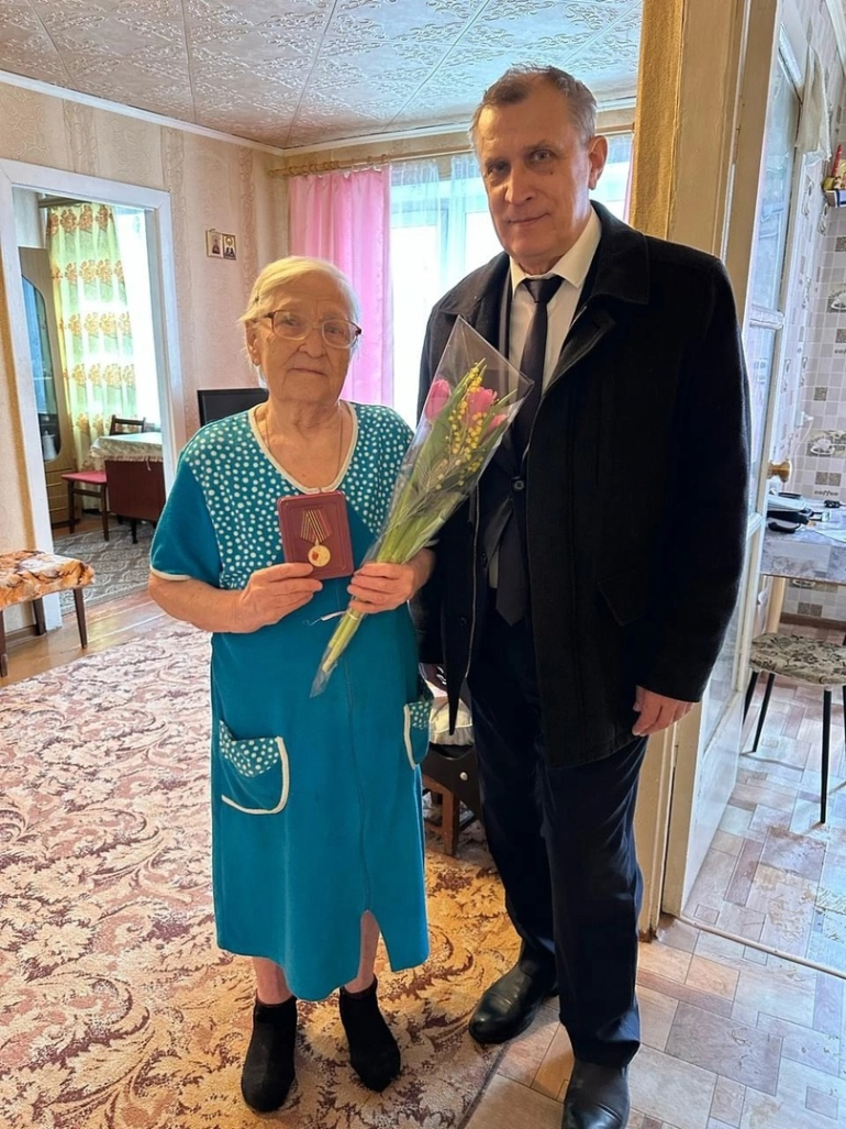 Так, недавно вручили медали и двум сызранкам, Людмиле Бурмистровой и Анне Ивановой, которые встретили войну будучи детьми. Их по поручению губернатора вместе с цветами подарил председатель думы Сызрани, Сергей Митко. Он также пожелал Людмиле Васильевне и Анне Михайловне крепкого здоровья, благополучия и долгих лет жизни.
