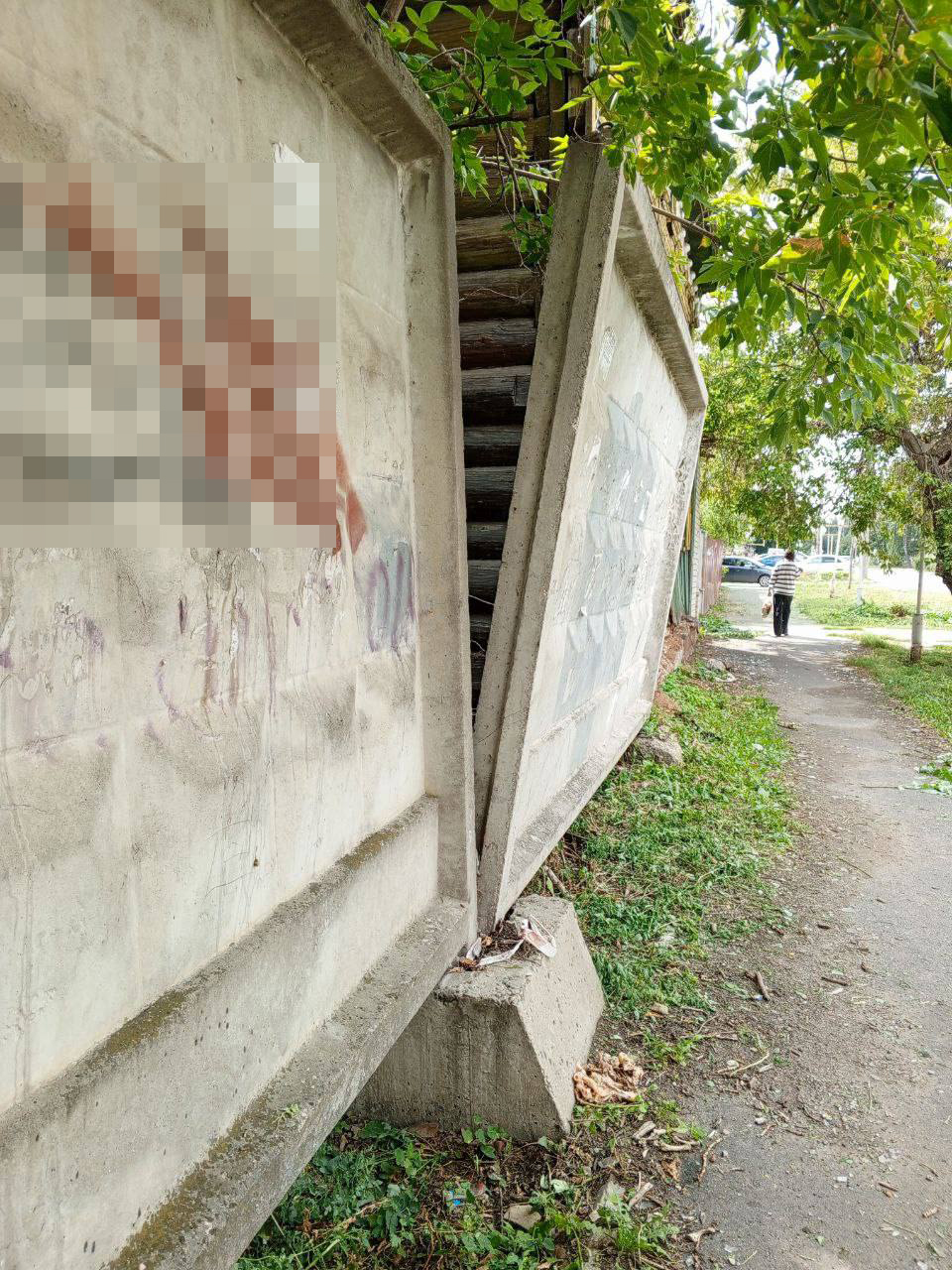 В центре Сызрани железобетонная плита грозит обрушиться на людей. Как сообщают местные жители, секция железобетонного забора на улице Карла Маркса напротив детской поликлиники опасно накренилась. Конструкция потеряла устойчивость и медленно склоняется над тротуаром, где ходят люди.