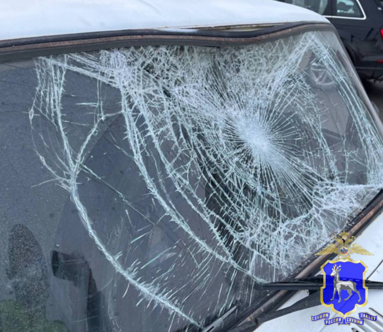 На фото видно, что удар был такой силы, что женщина разбила лобовое стекло автомобиля. Пострадавшую с серьезными травмами увезли на скорой в больницу.