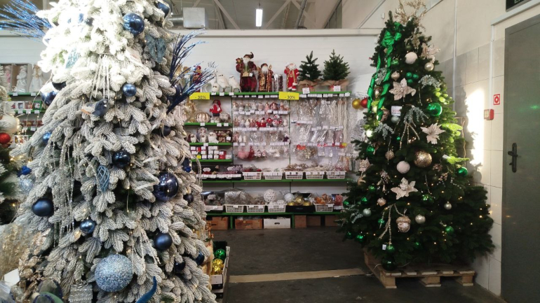 Руководство «Усадьбы» отметило, что в предпраздничные зимние дни в магазине будет представлен разнообразный новогодний ассортимент: искусственные елки, новогодний декор, елочные украшения.