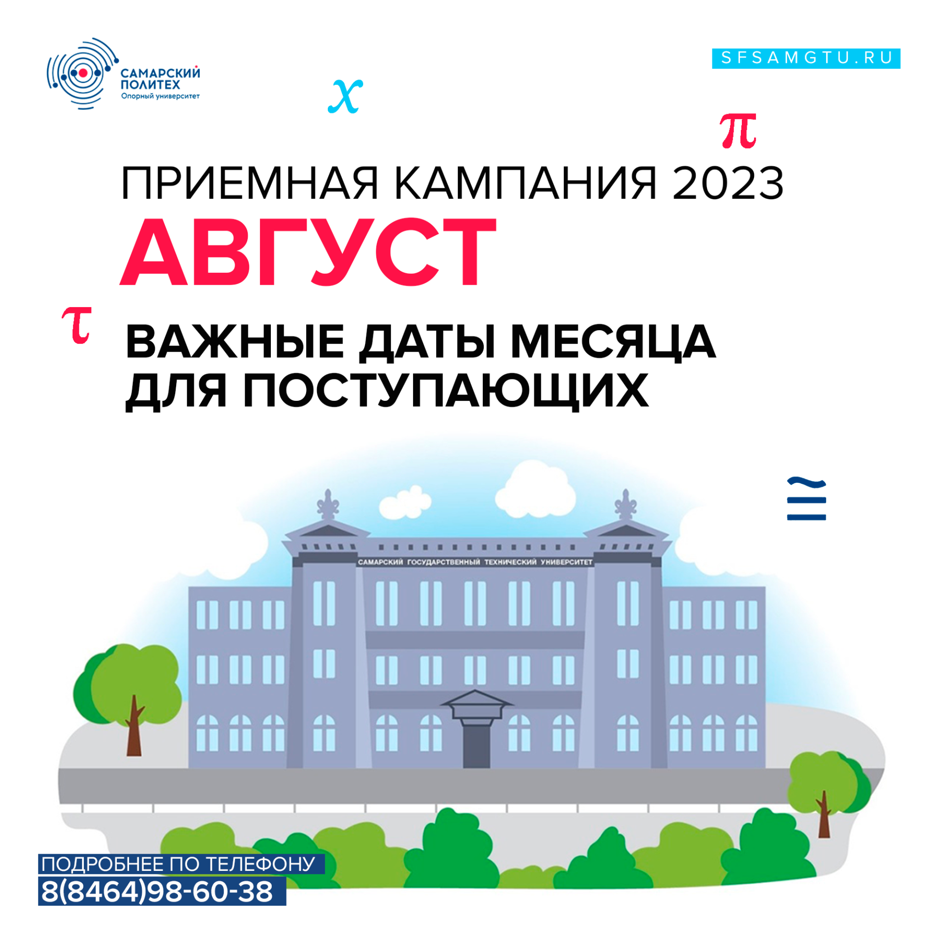 Для абитуриентов СФ СамГТУ пресс-служба вуза подготовила «памятку» самых важных событий августа.